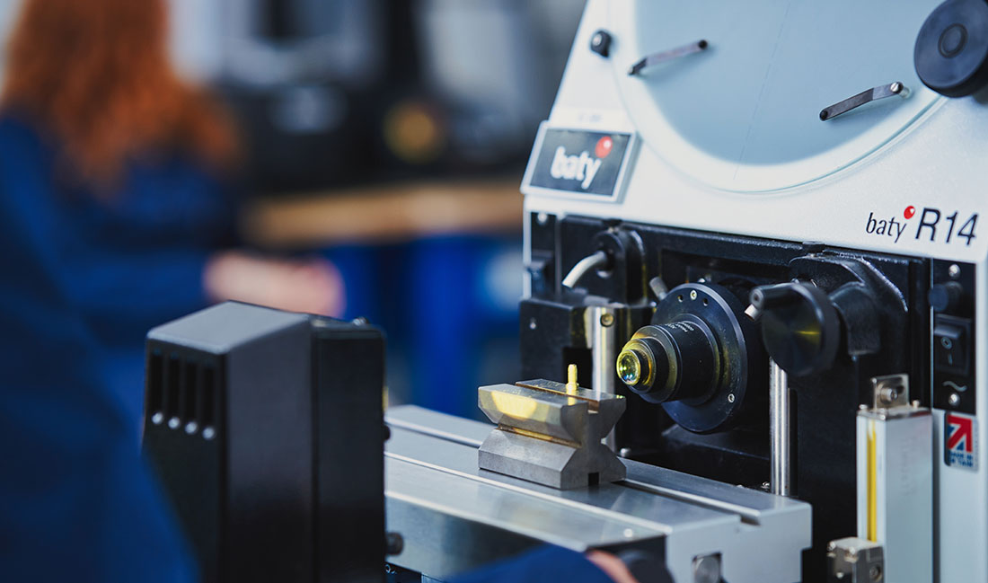 Optyczna maszyna pomiarowa do bezkontaktowej kontroli wymiarów. Umożliwia szybki pomiar średnic, długości, gwintów i promieni w jednym cyklu, z dokładnością do mikrometrów.