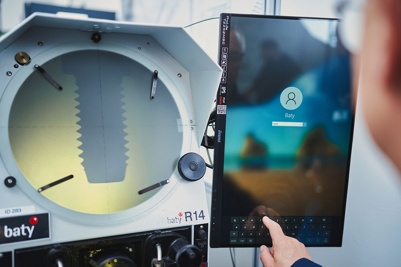 Optyczna maszyna pomiarowa do bezkontaktowej kontroli wymiarów. Umożliwia szybki pomiar średnic, długości, gwintów i promieni w jednym cyklu, z dokładnością do mikrometrów.